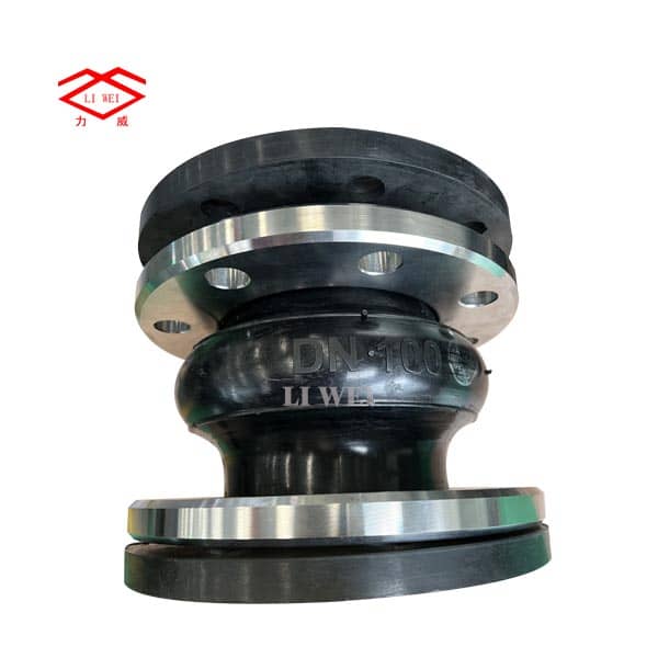 该产品主要利用橡胶的独特性能,如高弹性、高气密性,耐介质性及耐辐射性,采用高强度,冷热稳定性强的聚酯帘布斜交与之复合后,经高压,高温模压交联而成,内部致密度高,能承受较高压力,弹性变形效果优异,产品结构设计端面弧高,曲线长,具有较大的多项位移功能,特别使用于地质条件复杂,沉降幅度大和管道运行中冷热变化频繁易造成管道损伤的场所,利用橡胶的弹性滑动位移和变形机械力的传热散逸功能有效的消除泵,阀及管道自身的位移物理破坏。因橡胶属不良传导材料,所以它是一种良好的降低振动和噪声传递的产品,该产品设计内壁光滑,经实际测试,对介质的流速,流量无任何影响,并且不生锈,基本可以免除有效运行期内的维修。